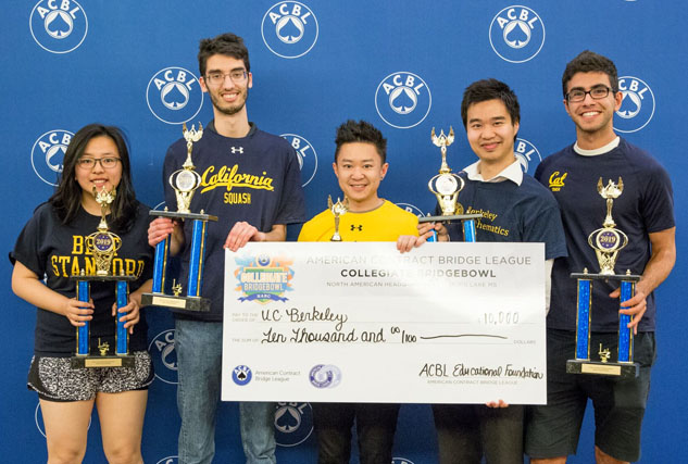 The Collegiate Bridge Bowl champions from the University of California at Berkeley: Stella Wan, Kevin Rosenberg, Jess Chao, Foster Tom and Armin Askari.