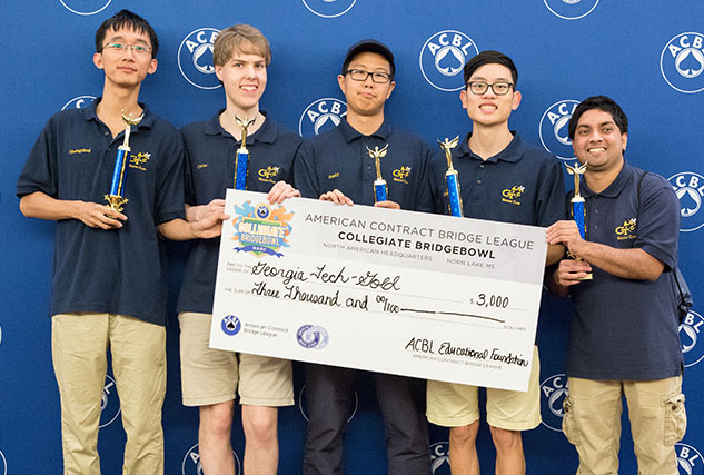 Third place in the Collegiate Bridge Bowl went to the Georgia Tech Gold Team: Shengding Sun, Cyrus Hettle, Zhuangdi Xu, Richard Jeng and Santhosh Karnik