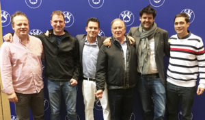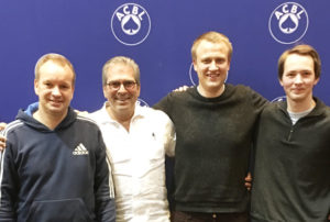 The winners of the Jacoby Open Swiss Teams: captain Espen Erichsen (a Norwegian who now lives in London UK), Tony Liebowitz of Australia, and Norwegians Tor Eivind Grude and Christian Bakke, The Erichsen team qualified second in Saturday’s opening round, scored 122.83 VPs in the final, 6 VPs ahead of the runners-up captained by Paul Street. It was the first NABC title for all of the winners.